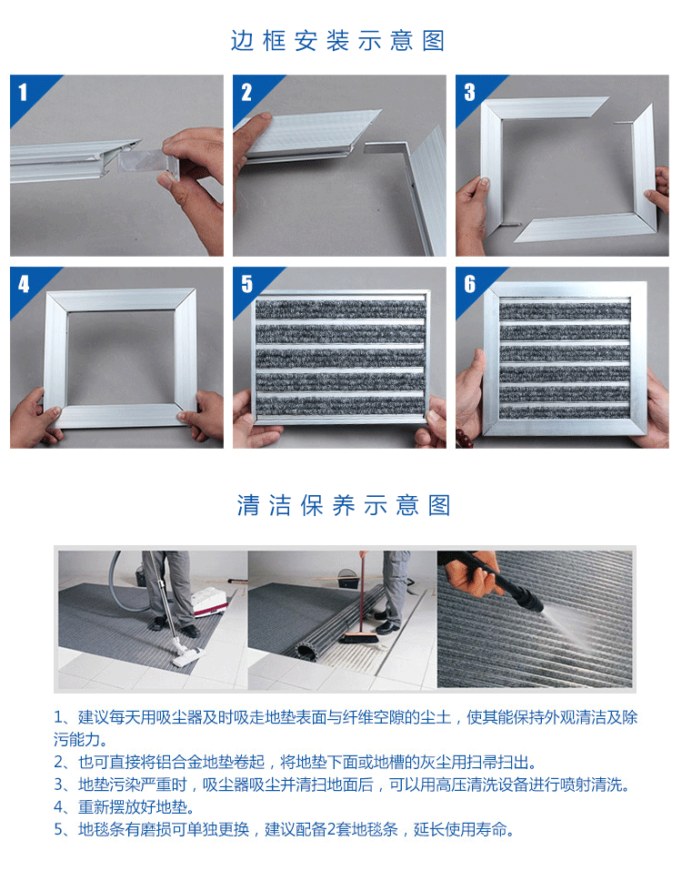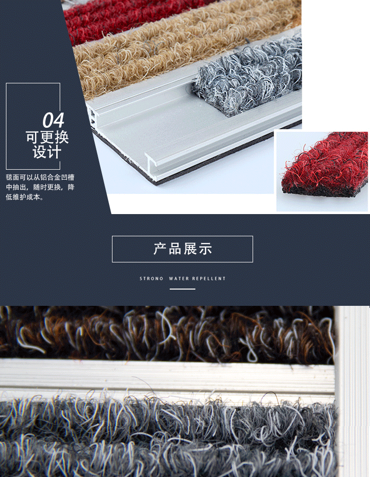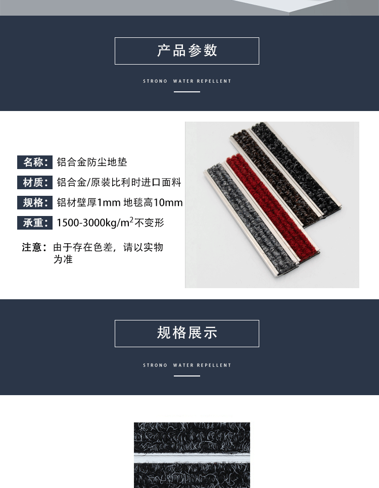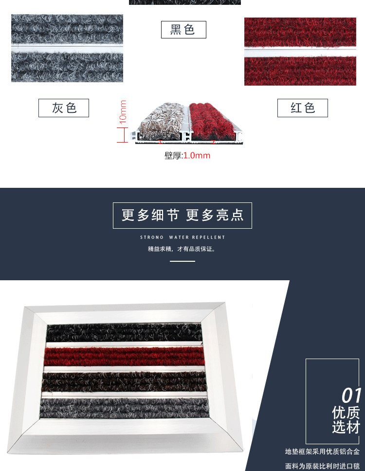 冰禹 铝合金防尘除尘地垫 BYjj-120 黑色 1mm壁厚膜 三条纹 1平方米