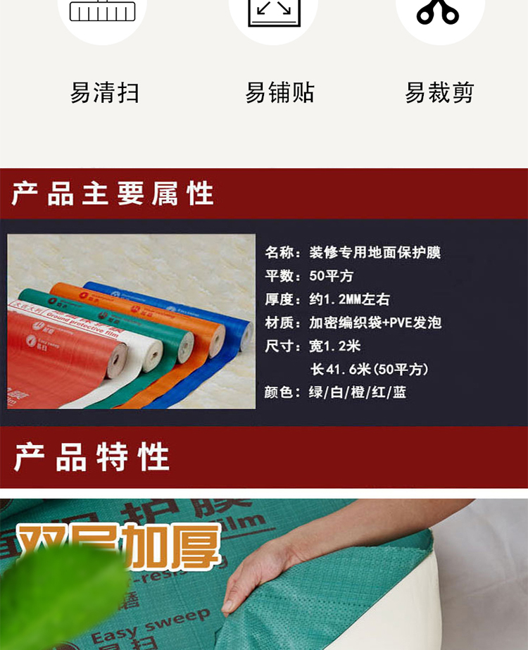 冰禹 地面瓷砖装修保护膜 BYyc-225 蓝色 加密50平米 约1.2mm 1卷