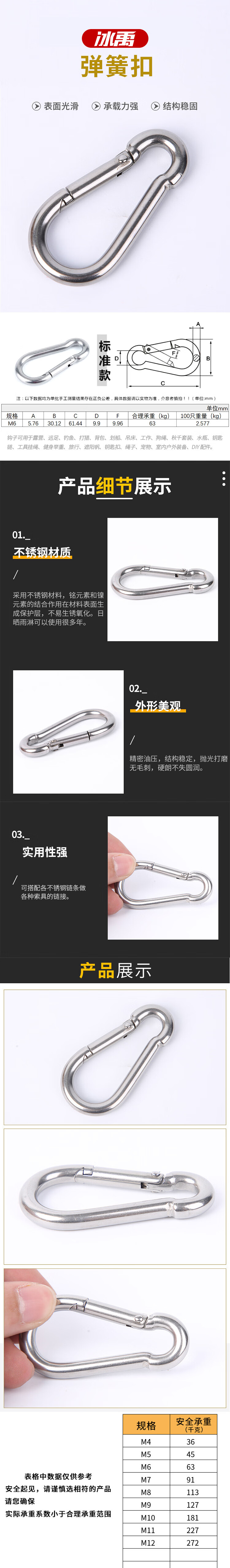 冰禹 304不锈钢登山扣弹簧扣 BH-212 不锈钢 M6(标准型) 1个