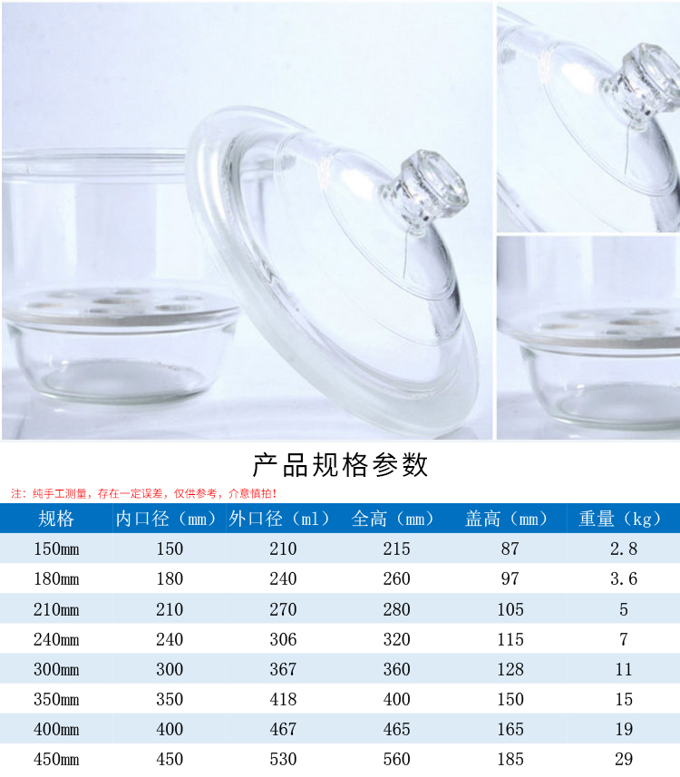 海斯迪克 玻璃干燥器 HKCL-193 210mm 透明 1个