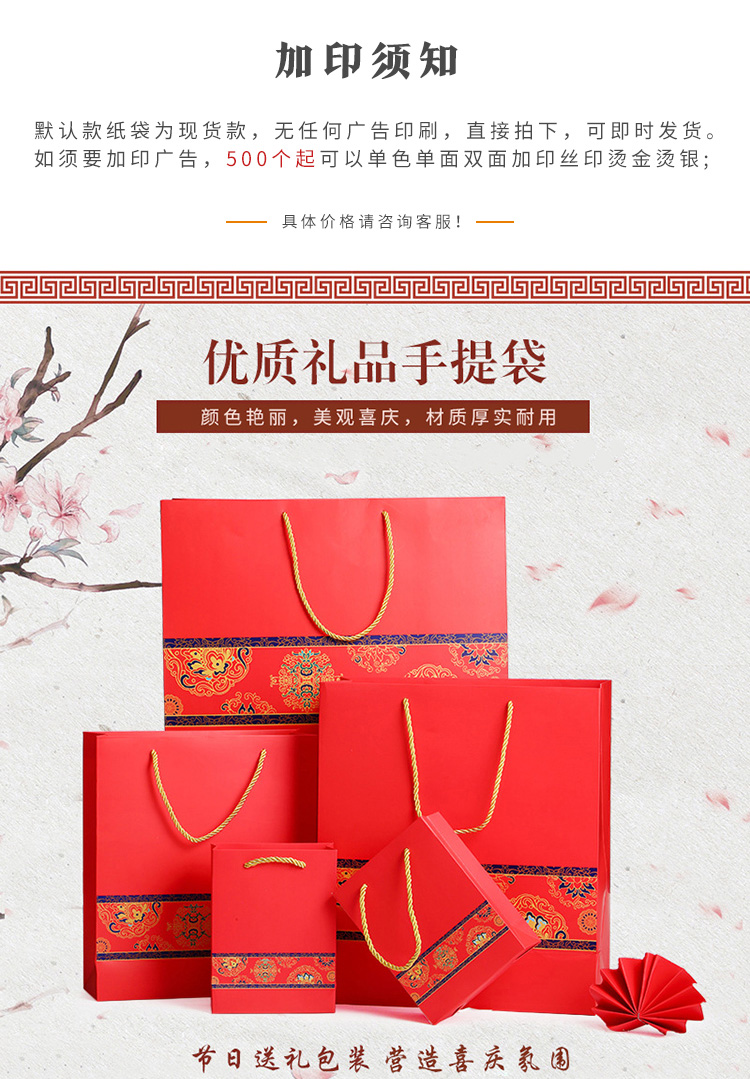 冰禹 手提纸袋 BYK-341 红色 (竖款)35*15*40cm 5只 1组