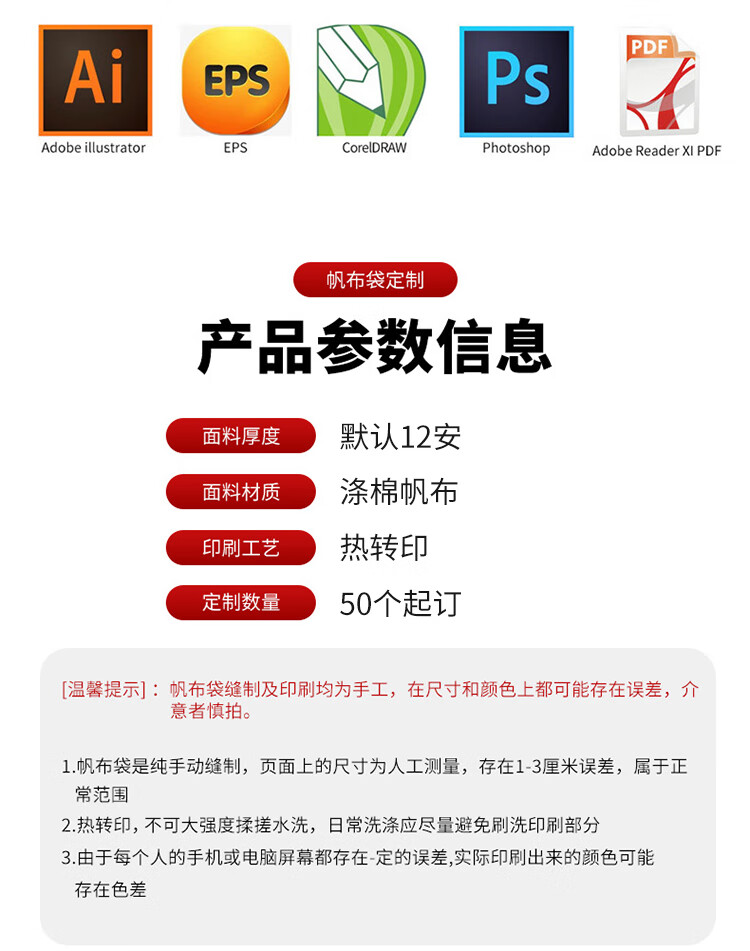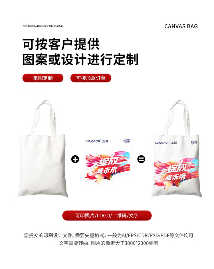冰禹 白色手提帆布袋 BYK-358 定制款(默认34*39cm) 1个