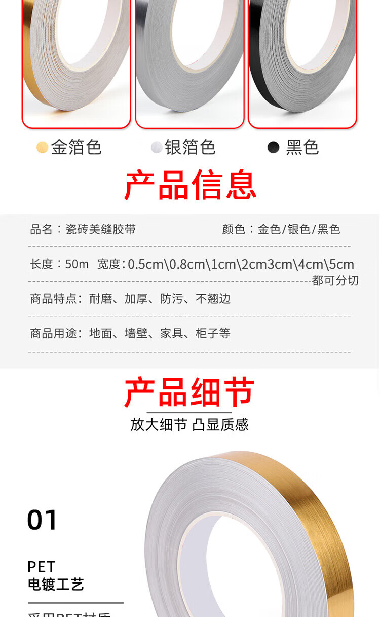 冰禹 美缝贴 BYK-370 黑色 40mm宽 1卷