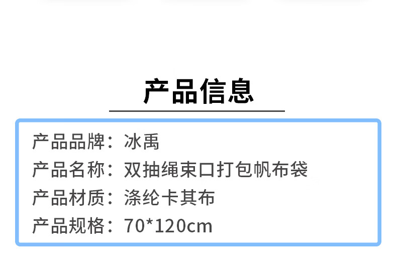 冰禹 双抽绳束口打包帆布袋 BYK-378 净物袋 70*120 1个