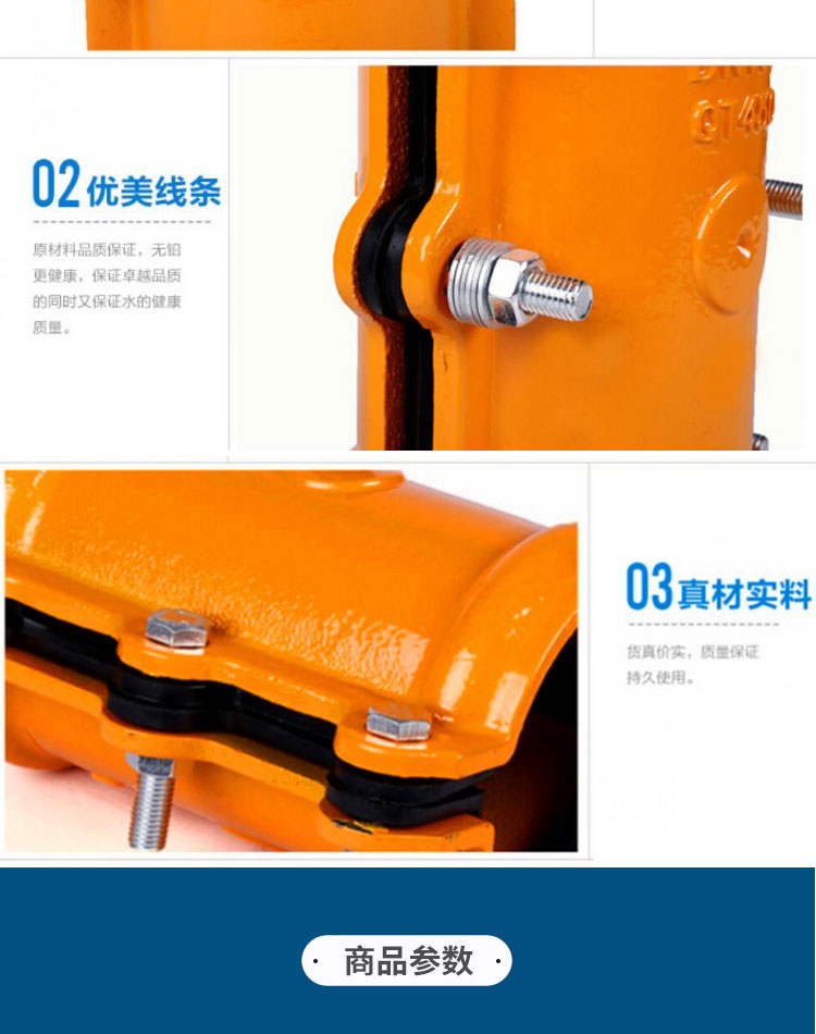 冰禹 直管哈夫节 BJjj-126 DN65×175mm 球墨铸铁 管道补漏 1个