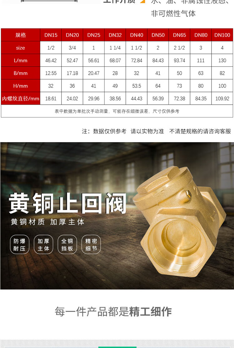 冰禹 黄铜卧式止回阀 BJ-223 黄铜阀体 DN40 1个