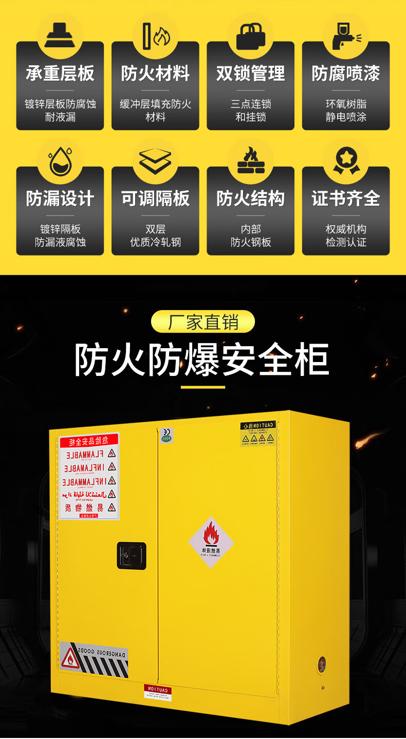 海斯迪克 防爆柜 gny-463 22加仑 黄色 镀锌层板 外尺寸1650*590*460mm 内尺寸155*510*380mm 1个