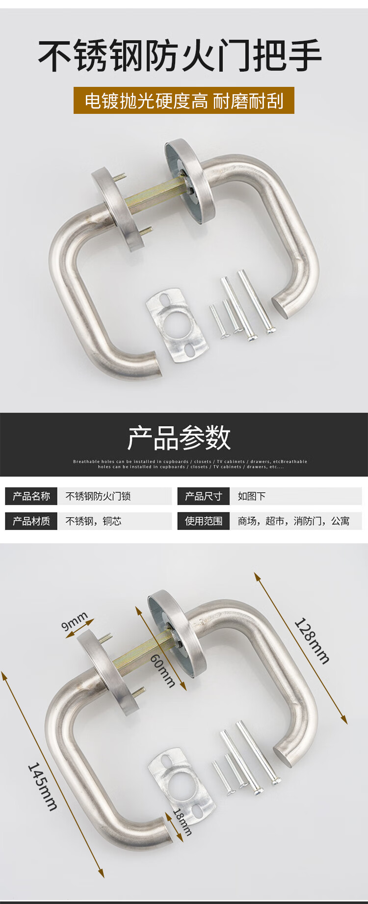 冰禹 防火门把手 BJls-263 不锈钢+铜芯 银色 不锈钢 1个