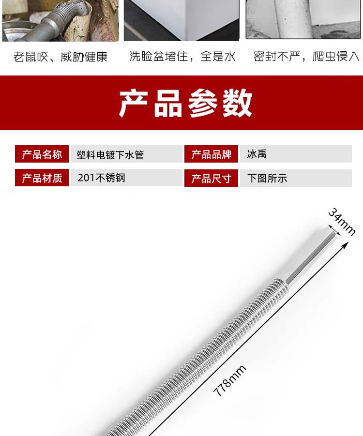 • 商品名称:冰禹 塑料电镀亮银色下水管