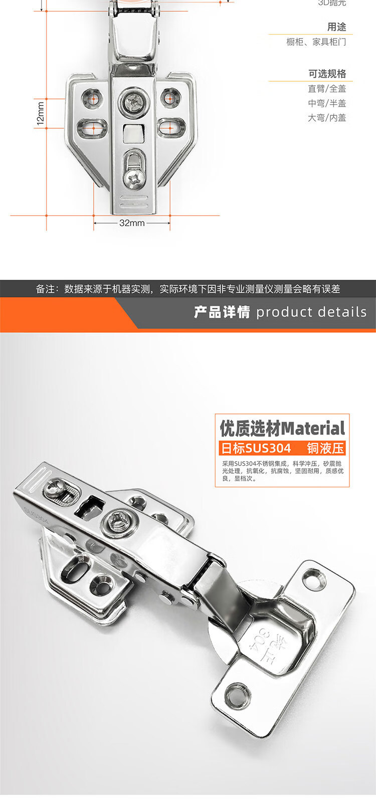 冰禹 液压铰链 BJhy-86 冷轧钢 固装 全盖=直弯 1个