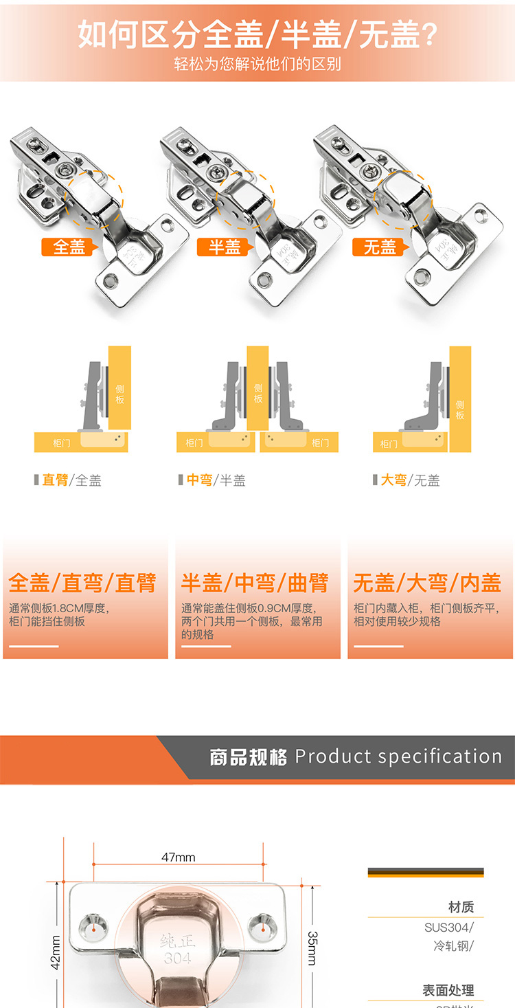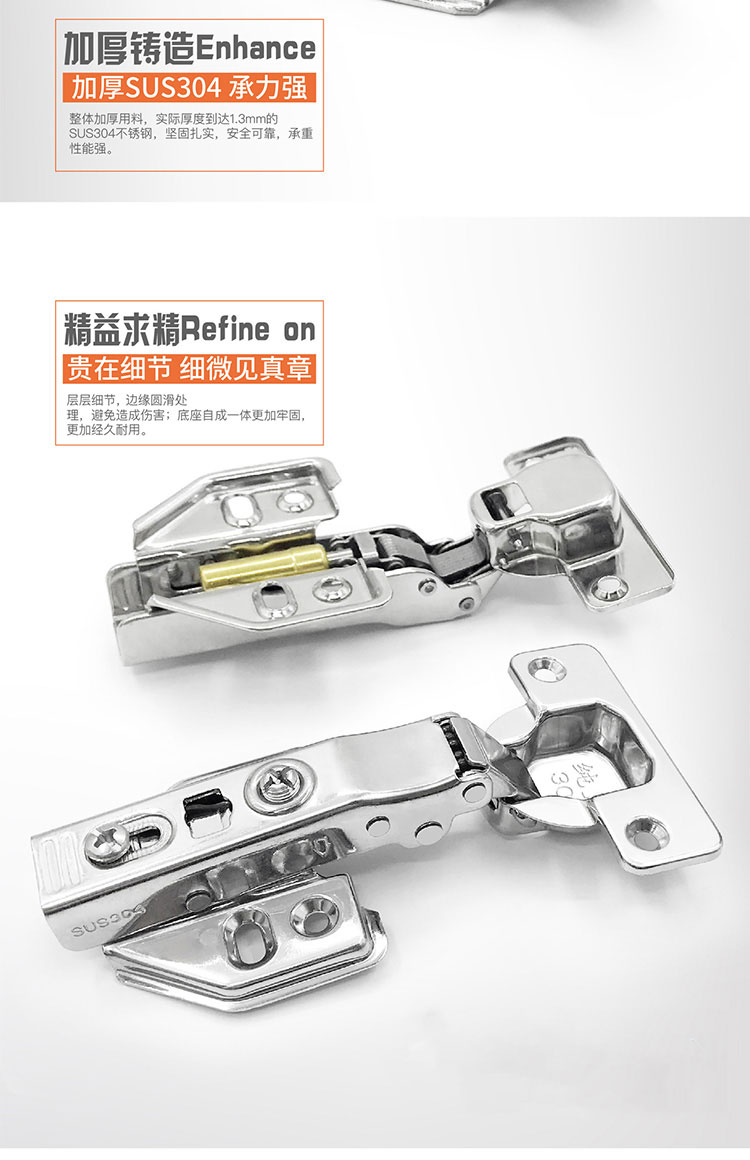 冰禹 液压铰链 BJhy-86 不锈钢 固装 半盖=中弯 1个