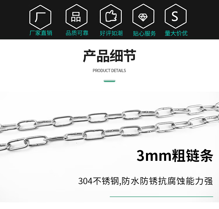 海斯迪克 链条晾衣绳 gnxy-490 304链条3m+2个弹簧扣 1件