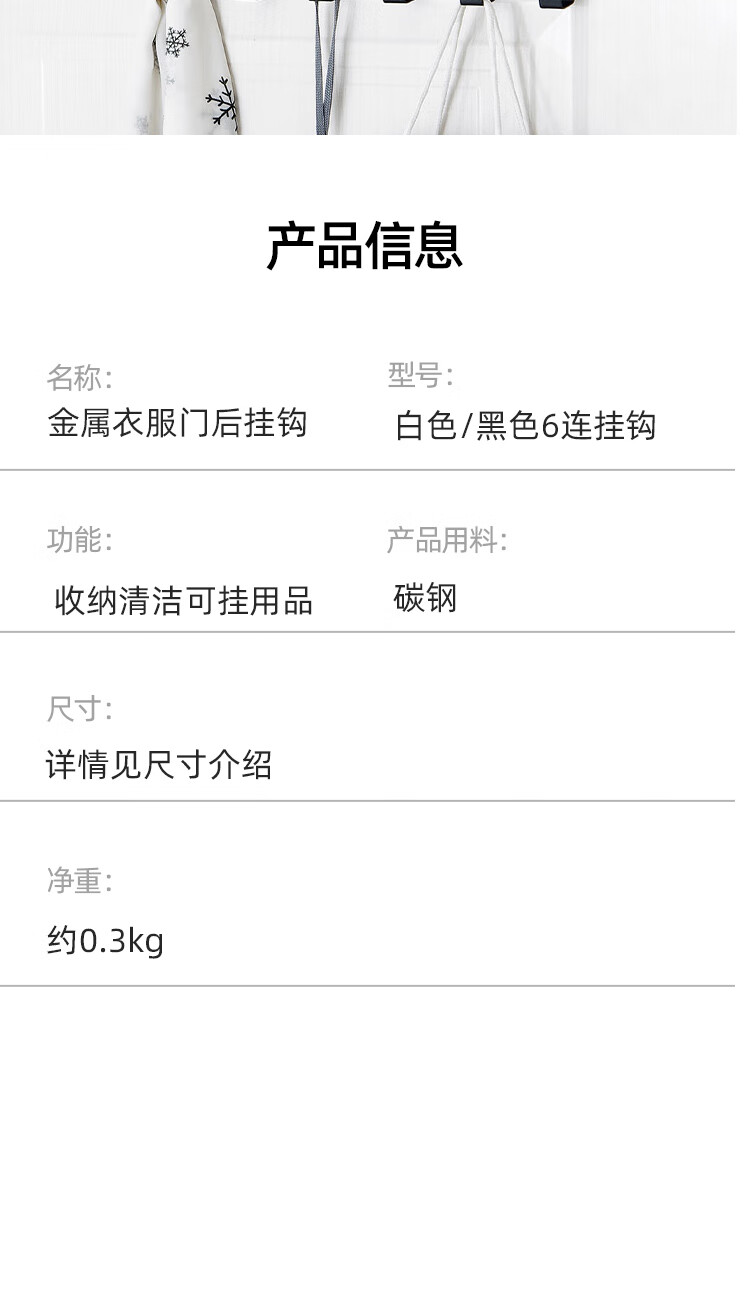 冰禹 金属衣服门后挂钩 BJ24 白色 1个