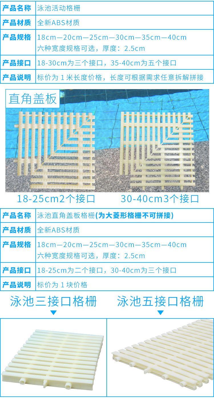 冰禹 游泳池格栅排 BYyn-33 ABS 骨色三插口宽20cm 1块