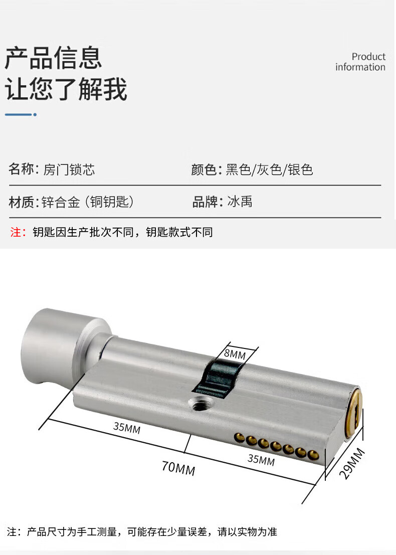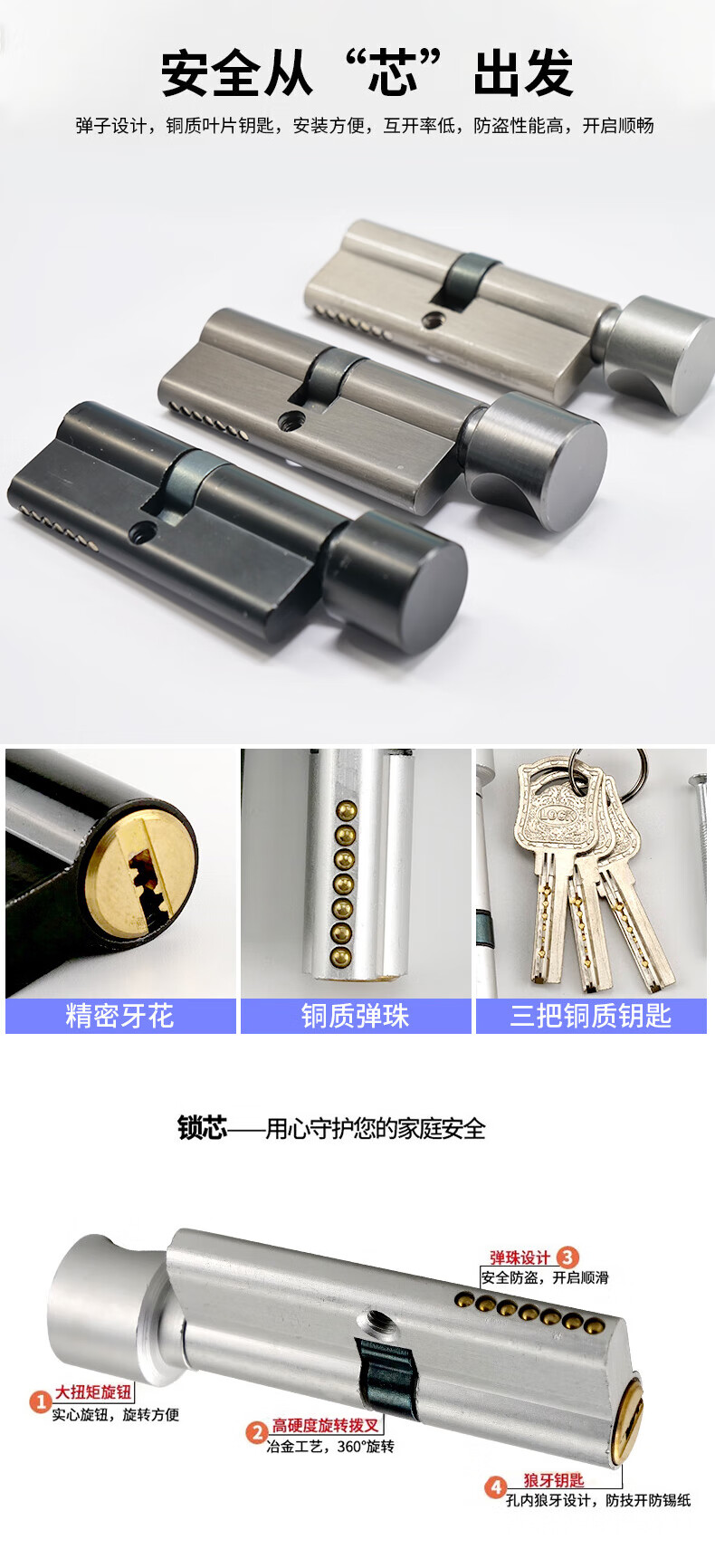 冰禹 房门锁芯 BYyn-361 锁芯 银色 1个