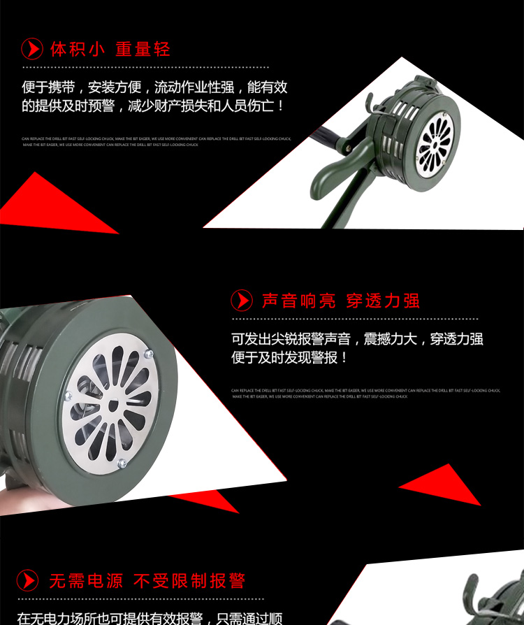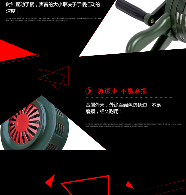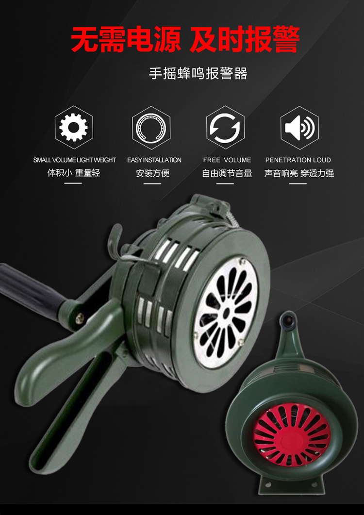 海斯迪克 无电源铝合金手动手摇报警器 HKL-238 红绿 1个