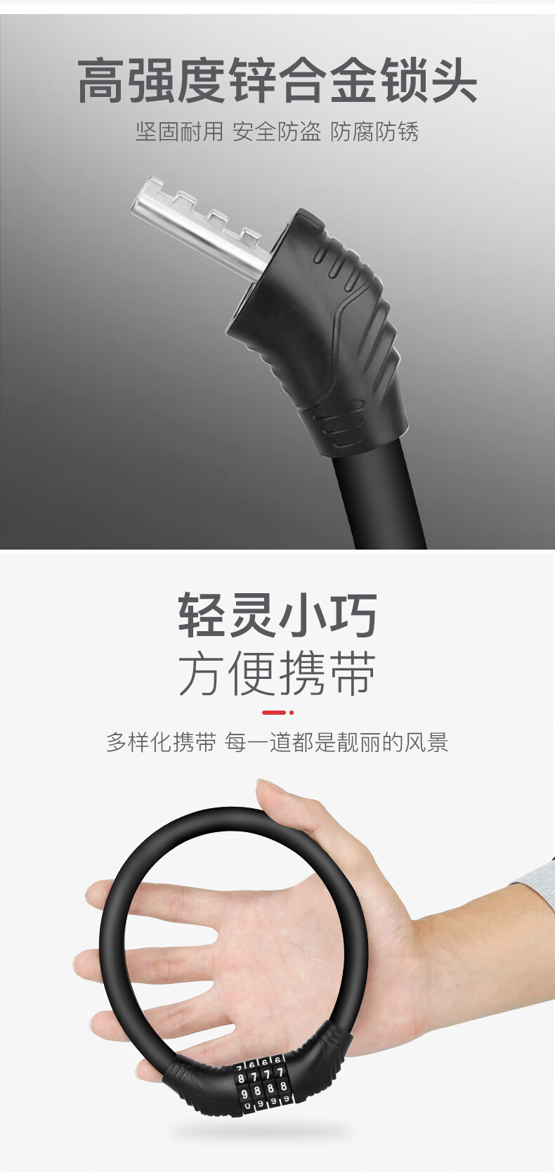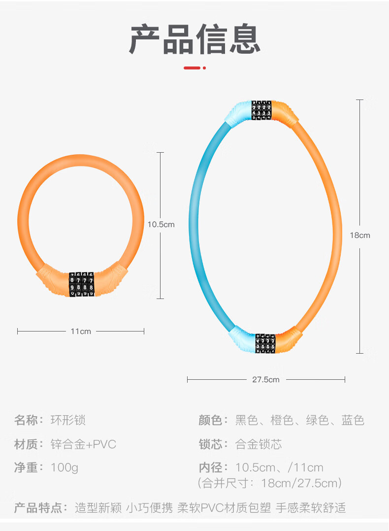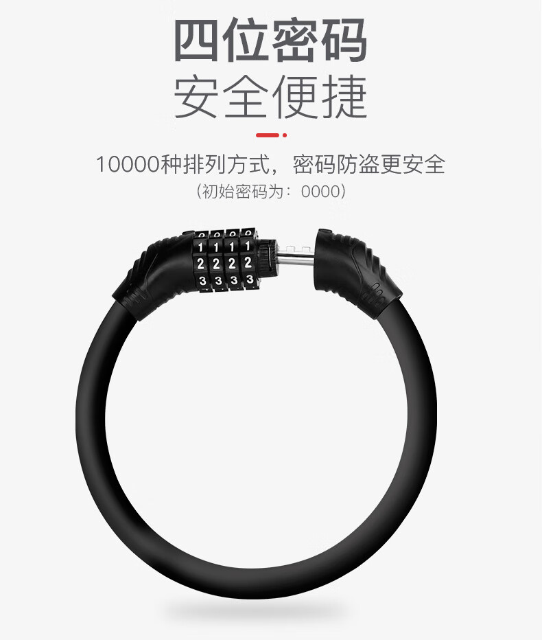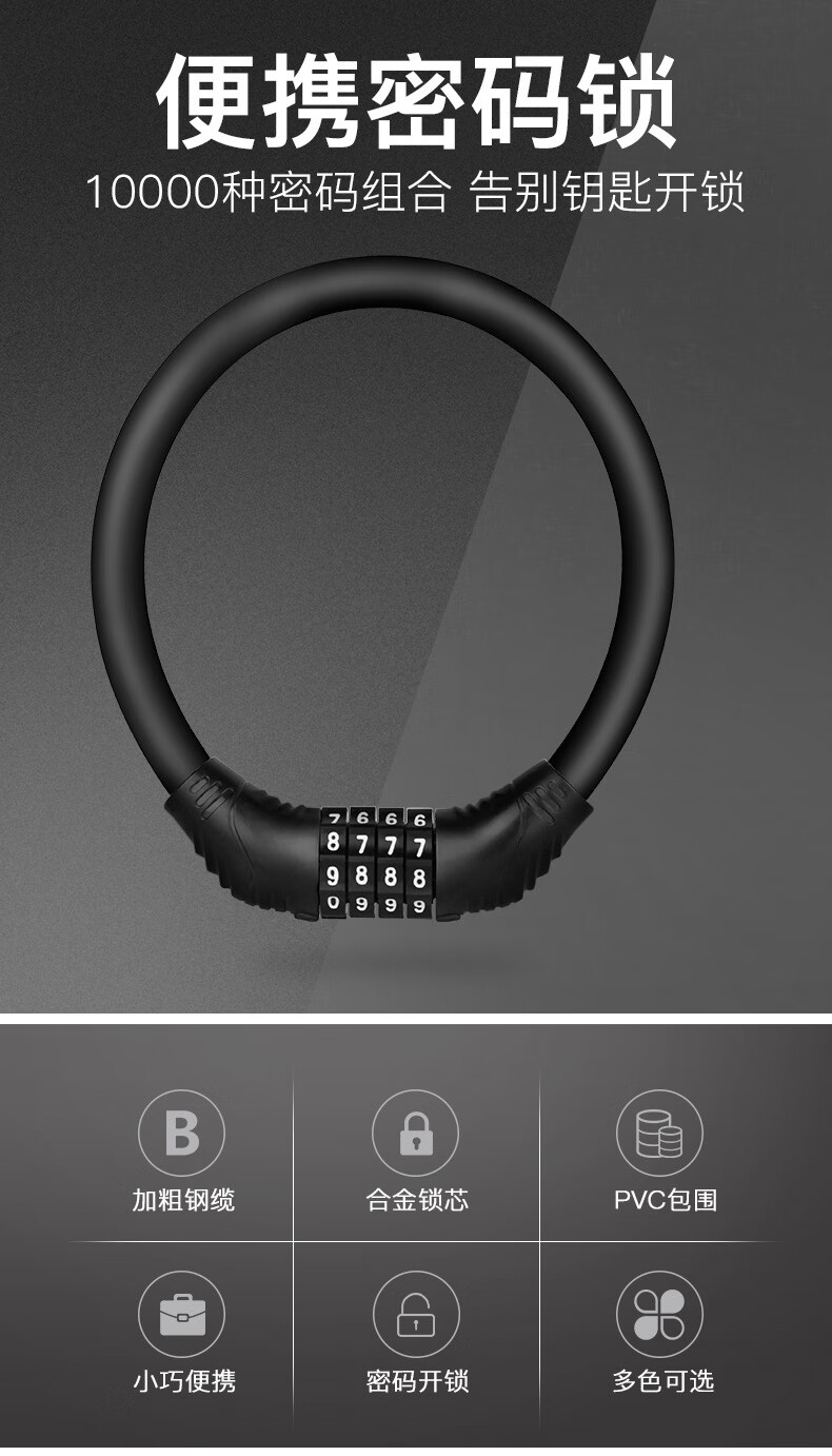 冰禹 自行车锁密码锁 BYyn-488 黑色环形锁 1个