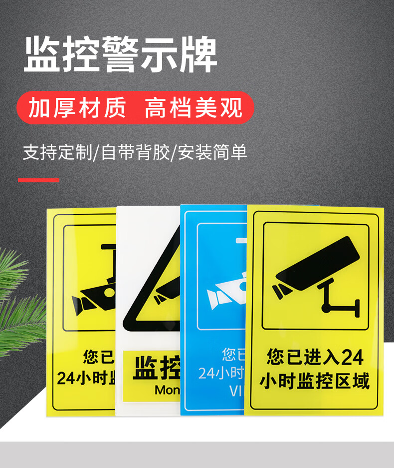 冰禹 视频监控警示牌 BYyn-314 亚克力 24小时监控01 20*30cm 1个