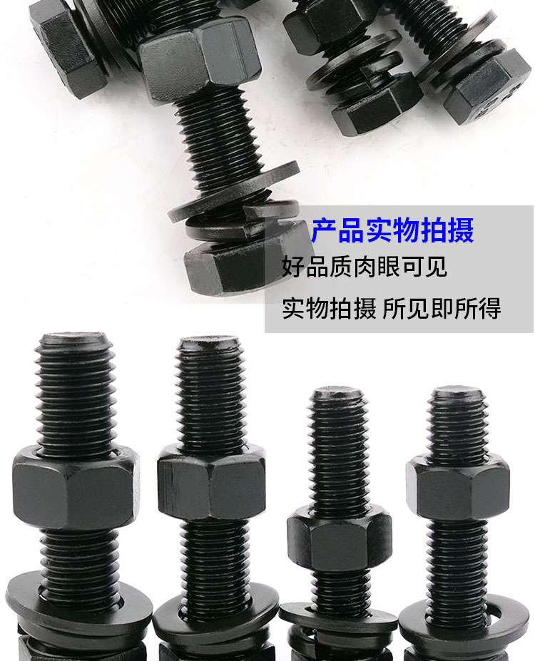 冰禹 外六角螺栓螺母平弹垫套装 BJyl-92 M20*60 碳钢 GB5783螺栓+GB97.1平垫+GB93-76弹垫+GB6170A型螺母 黑色 5套 1件