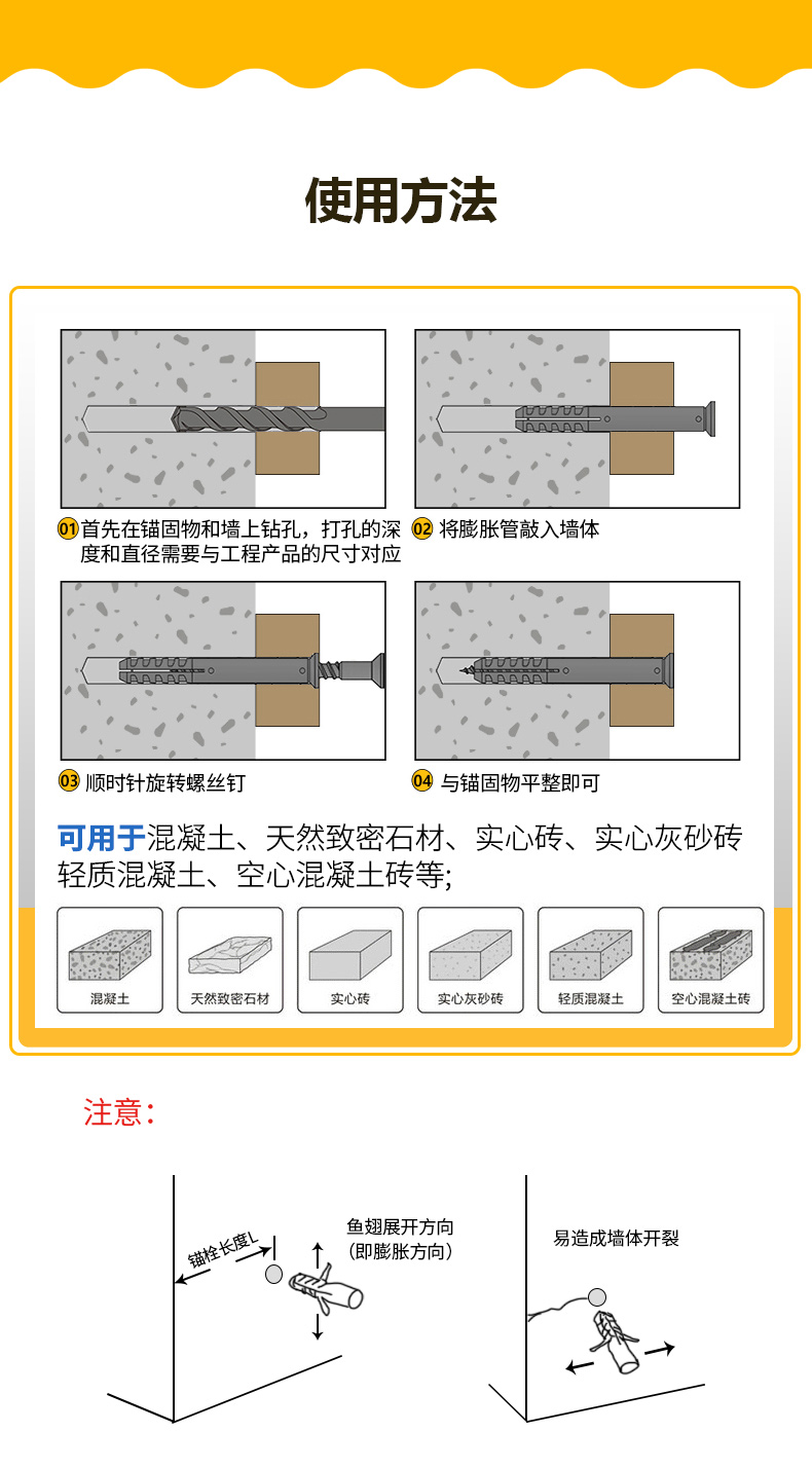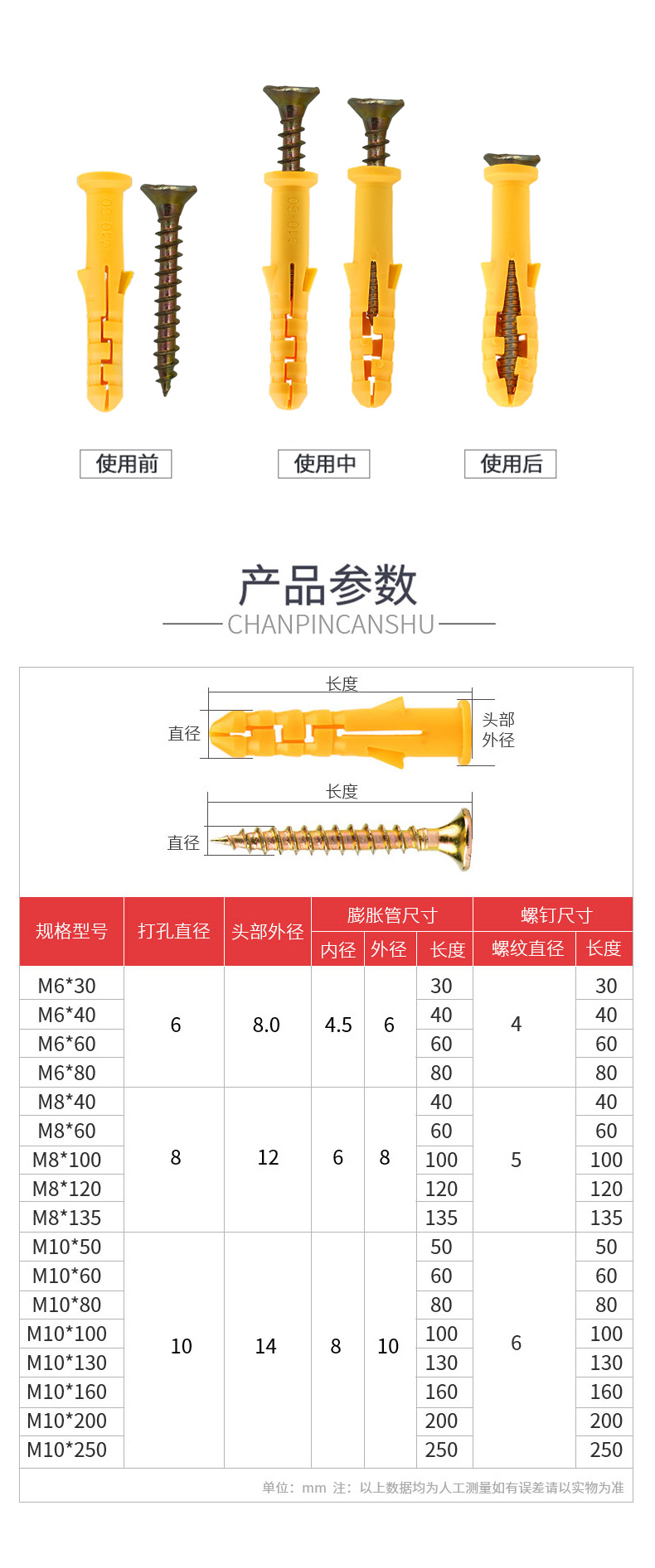 冰禹 塑料膨胀螺丝 BYJZ-2001 10*50mm 20套 1件