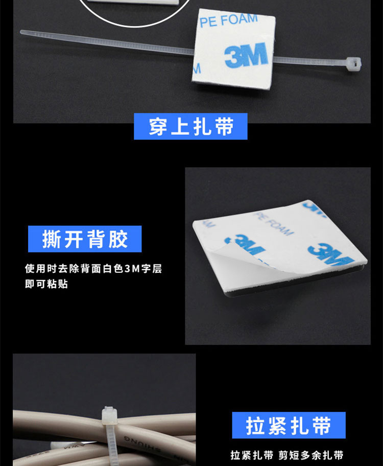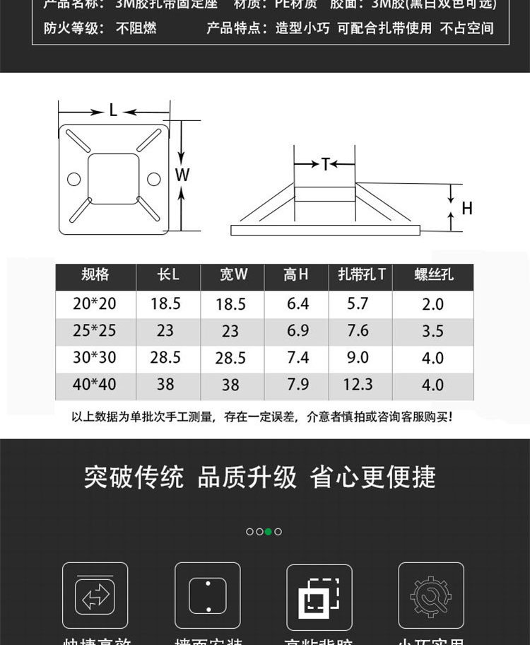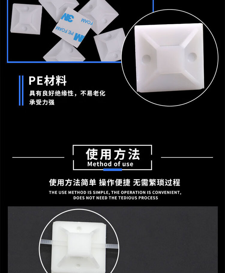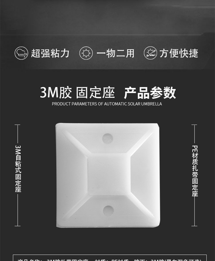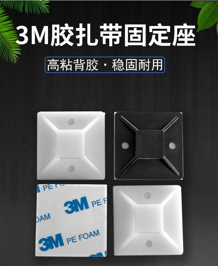 冰禹 3M胶扎带固定座 BJyl-112 25*25mm 黑色 100只 1件