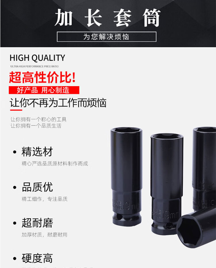 冰禹 气动加长六角套筒 BJyl-148 17*78mm 黑色 高碳钢 1个