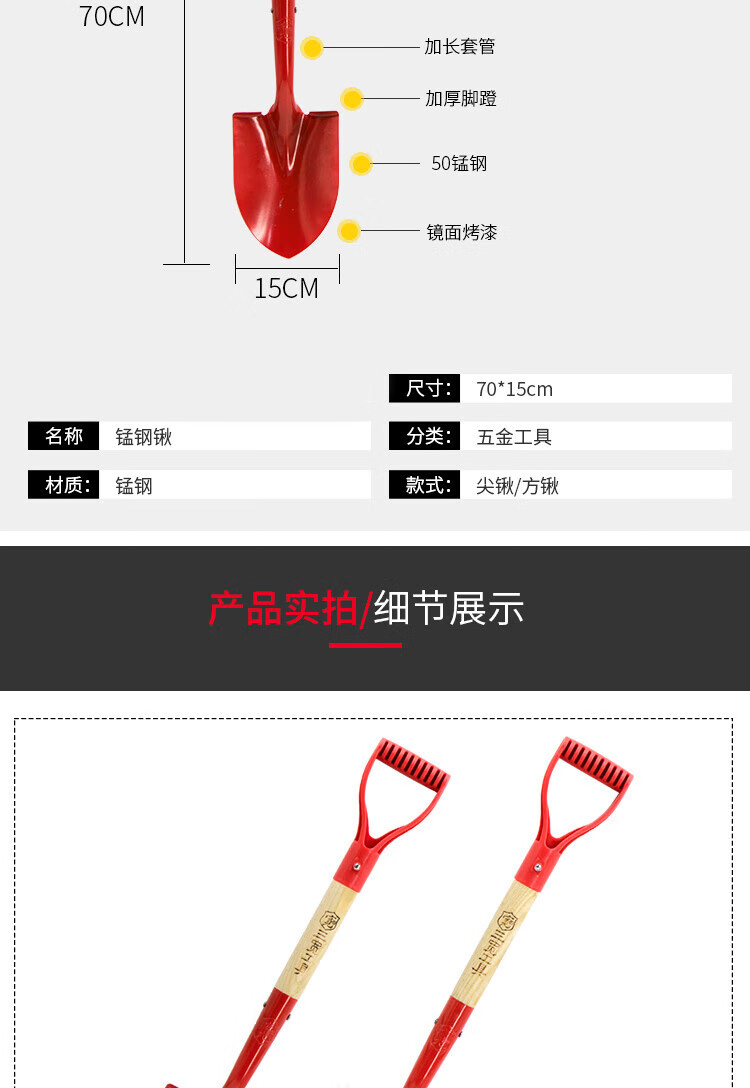 冰禹 一体式木柄铁锹 BYT-85 锰钢 一体式尖锹 1把