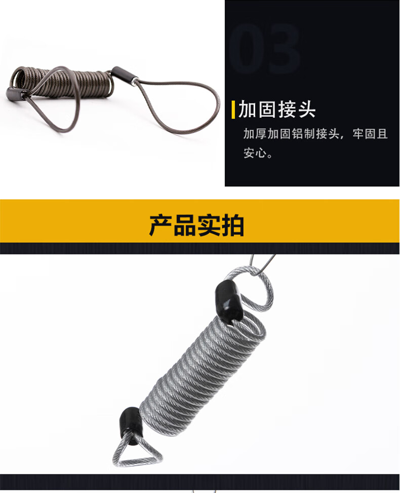 冰禹 包胶防盗弹簧钢丝绳 BYT-107 PVC 1米 黑色 2个 1件