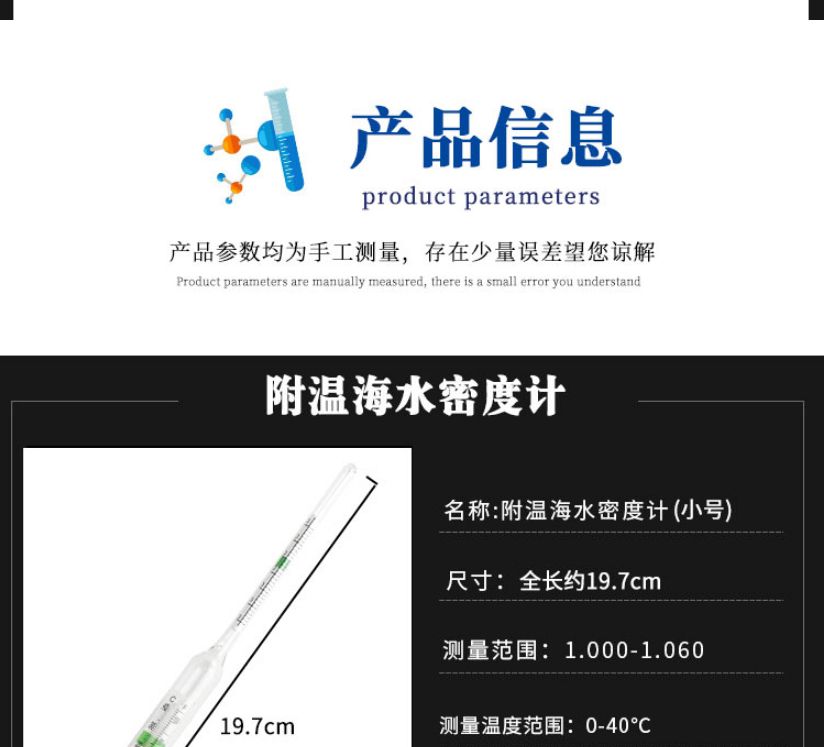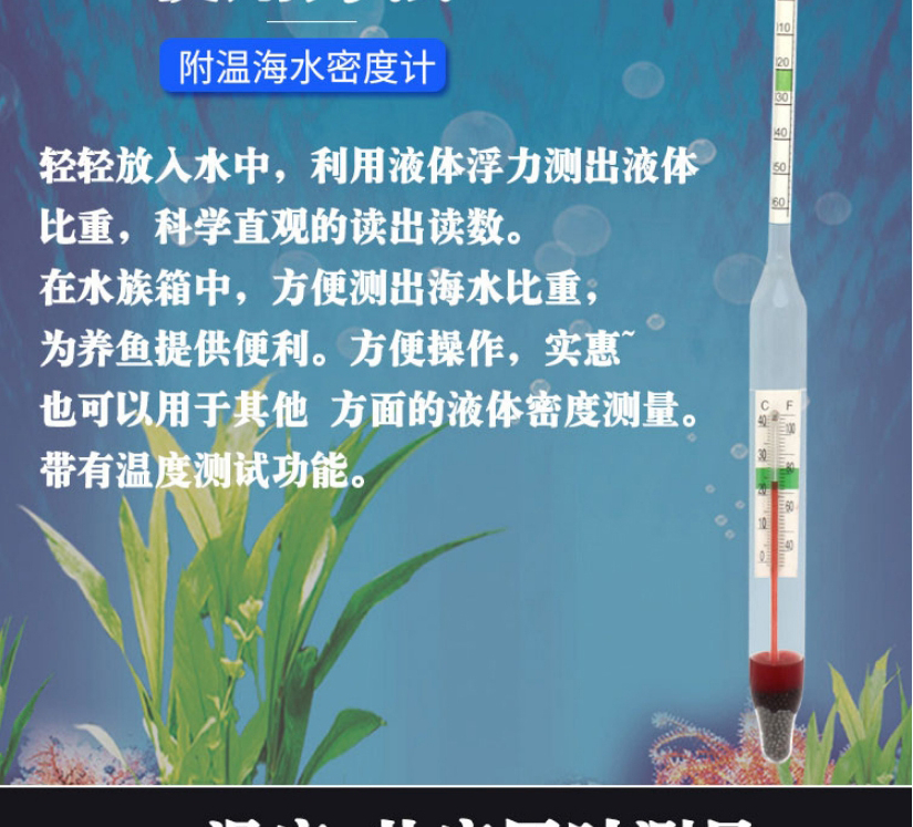 海斯迪克 高精度水族箱海水比重计 gnjz-4106 玻璃不附温大号 265mm 1个
