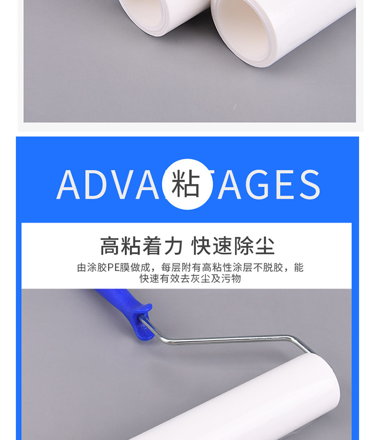 冰禹 PE手动清洁粘尘滚筒 BJ-933 聚乙烯膜 白色 12英寸滚筒 1个