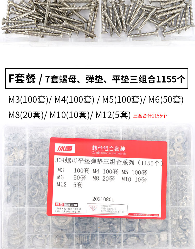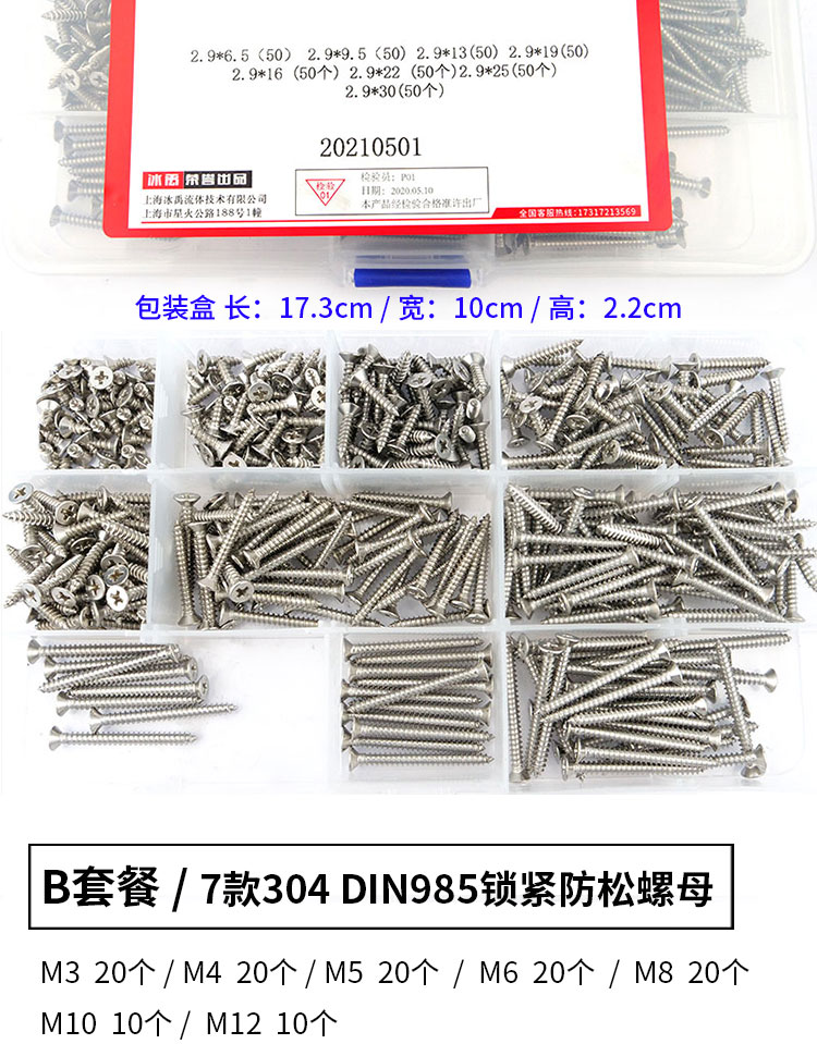 冰禹 不锈钢螺母组合装 BYJZ-06 304不锈钢 B款DIN985 1件