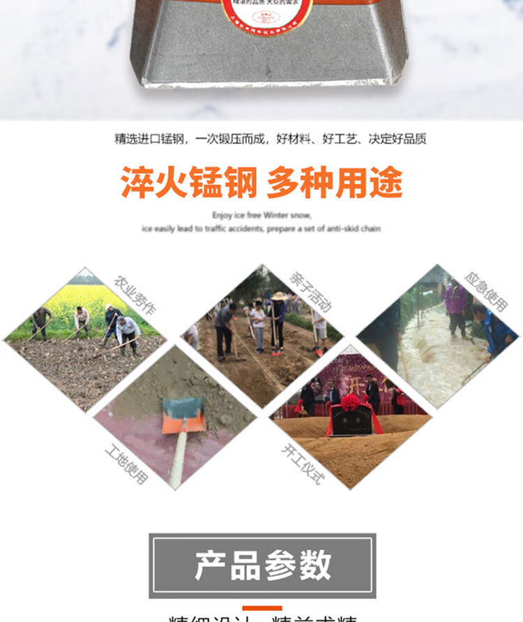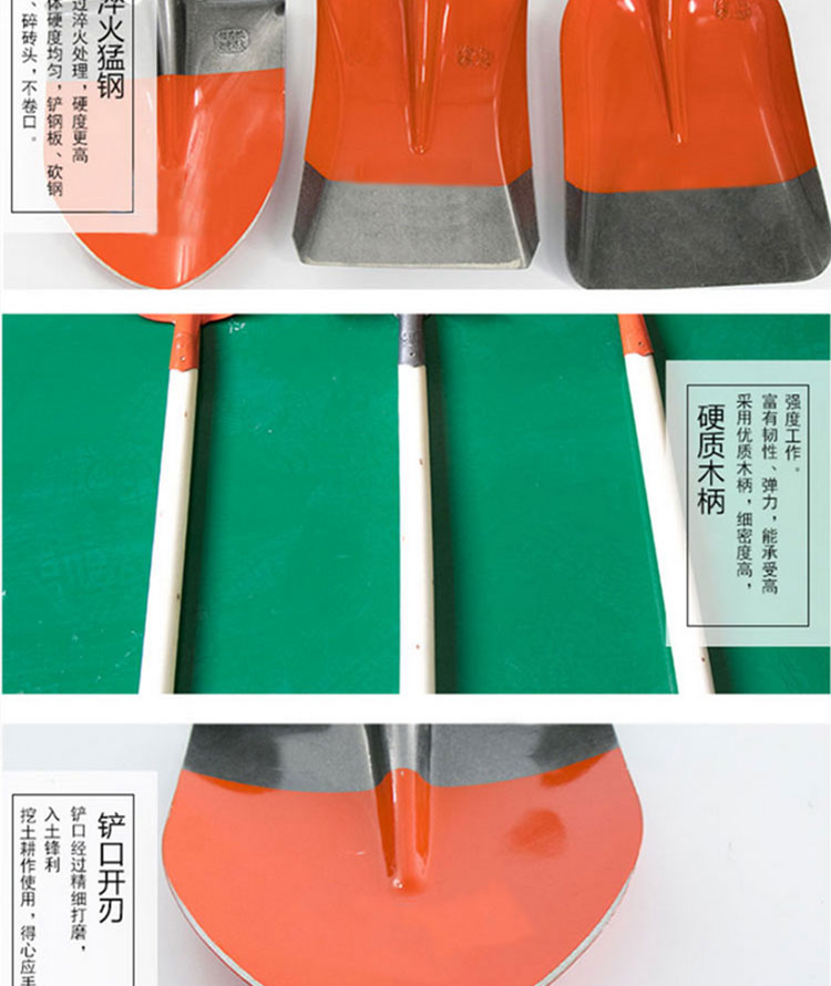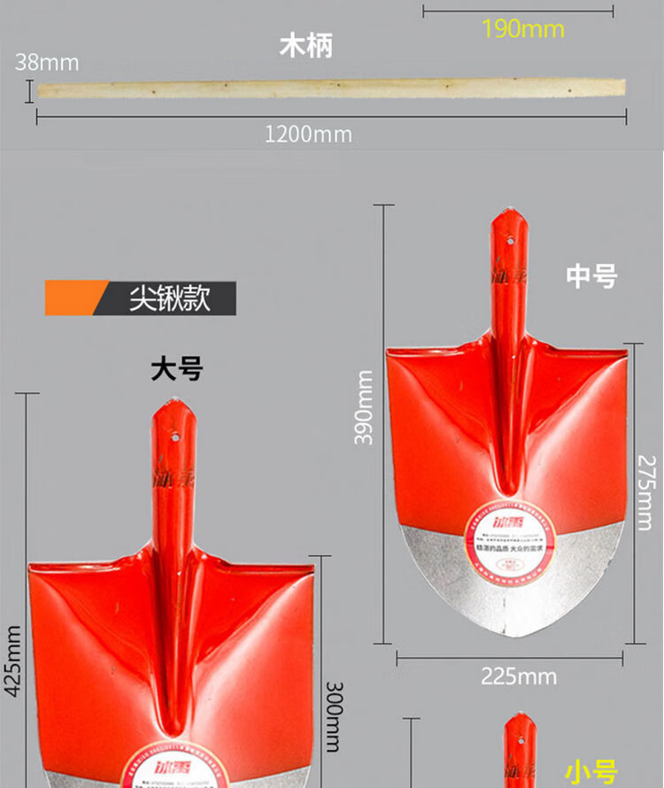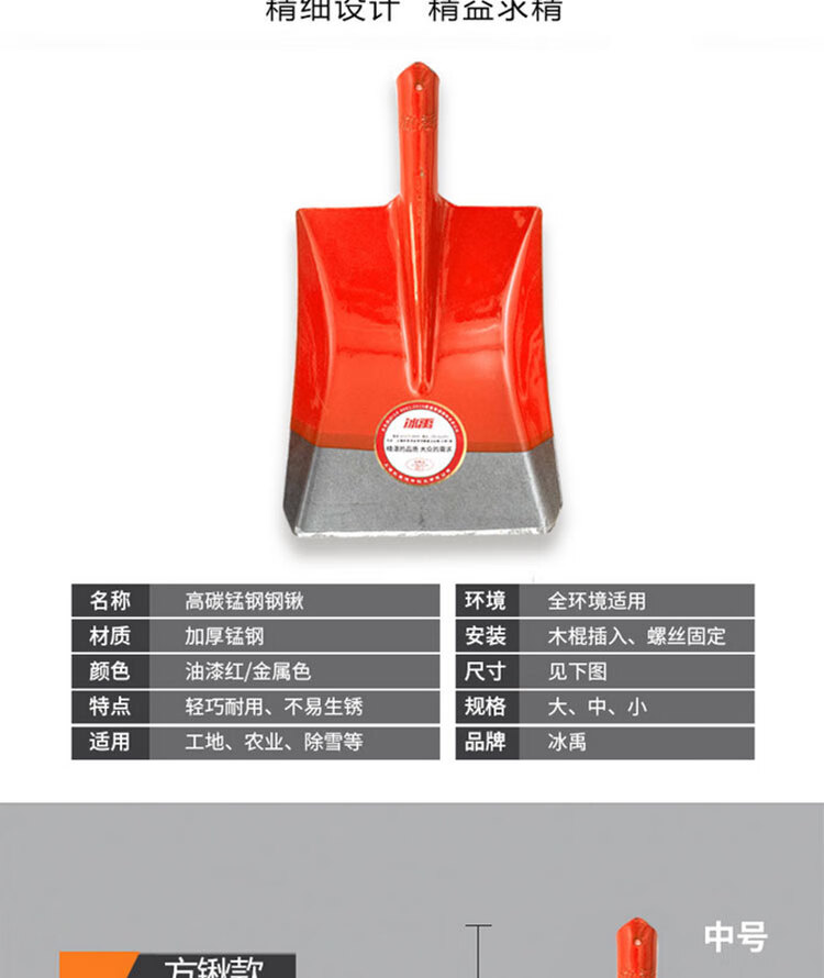 冰禹 铁锹铁锨 BJ-720 锰钢 (配优质椿木柄+手套)中号尖型 390*225*275mm 12把 1件