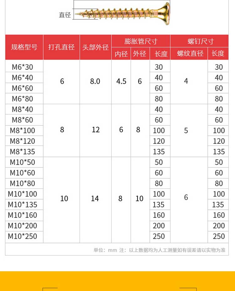 冰禹 塑料膨胀螺丝螺栓 BJyl-221 6*80mm 100套 1件