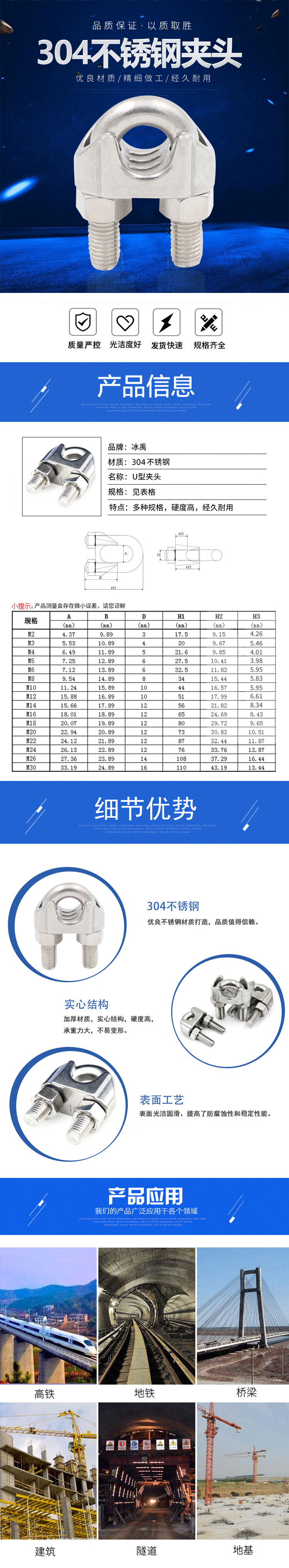 冰禹 不锈钢U型夹头 BYW-118 304不锈钢 M26 1个