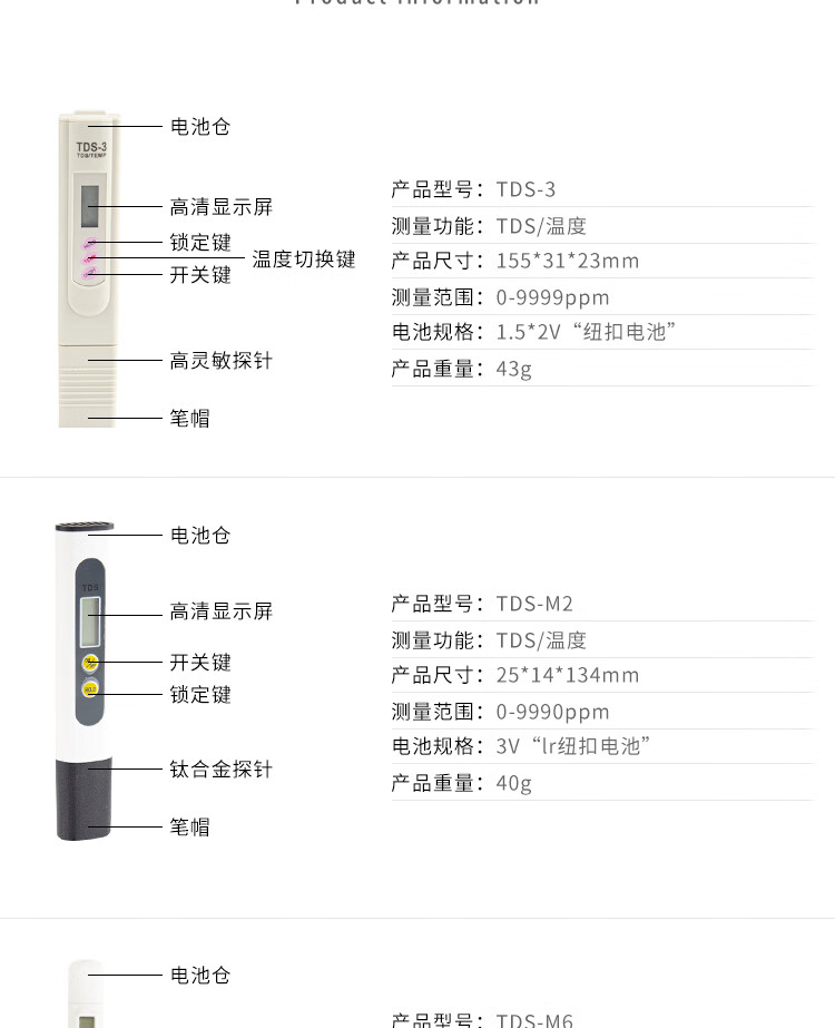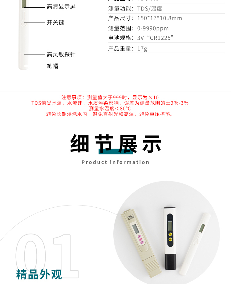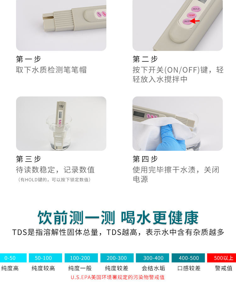 海斯迪克 检测笔 gnjz-3154 白色tds检测笔 1个