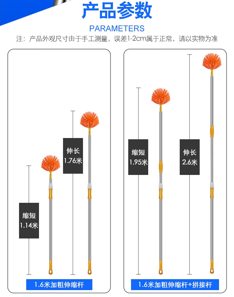 海斯迪克 天花板扫 gnzl-109 2.65m不锈钢杆扇形扫 1个