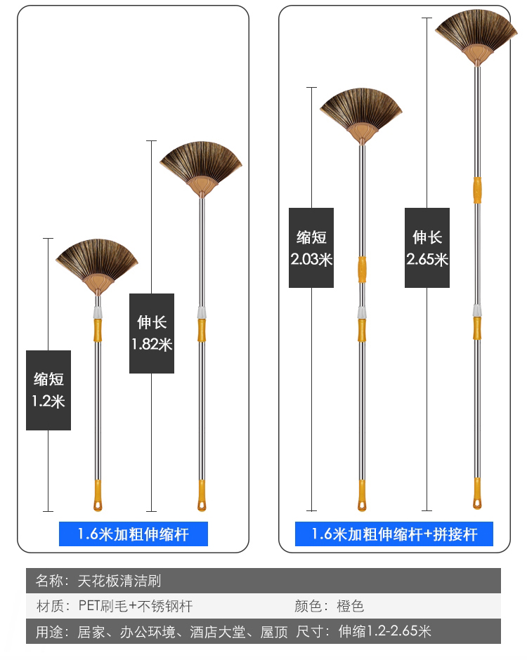 海斯迪克 天花板扫 gnzl-109 1.76m不锈钢杆球形扫 1个