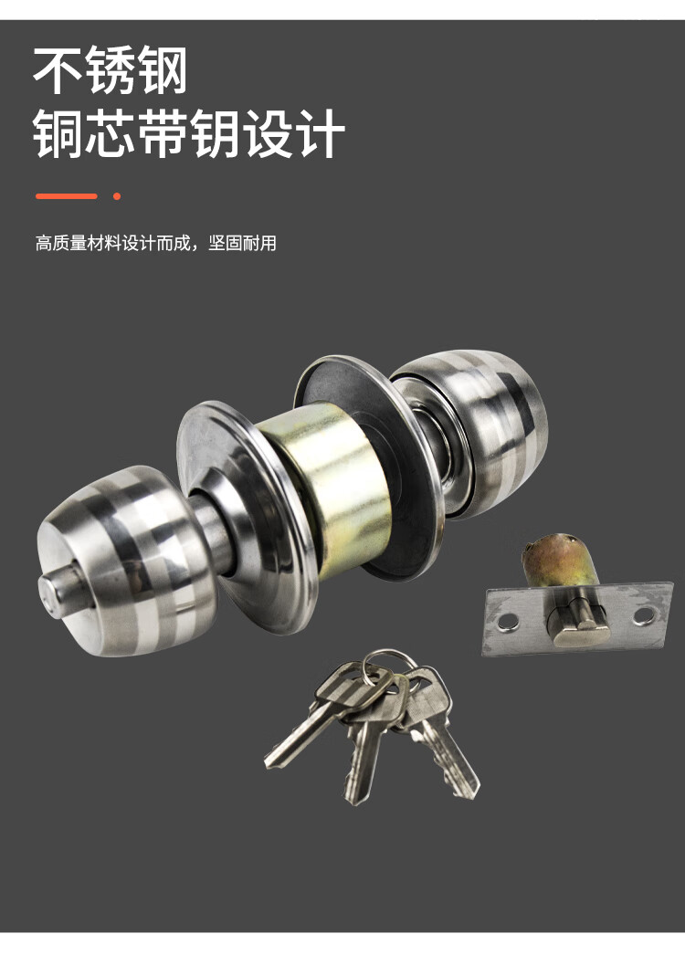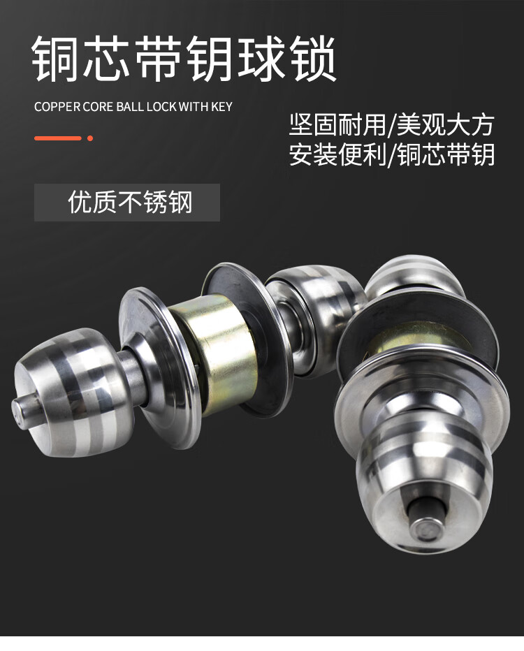 冰禹 球锁 BYP-161 不锈钢 普通带钥匙70MM门边距长舌 1个