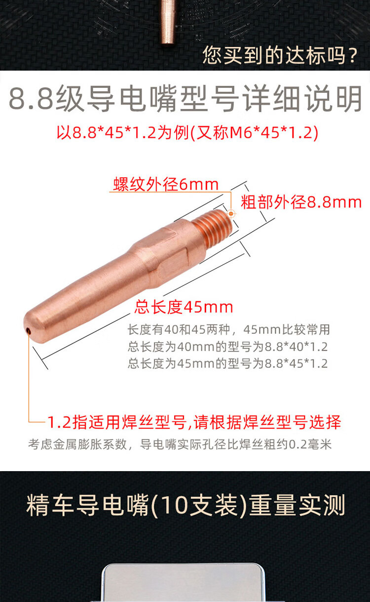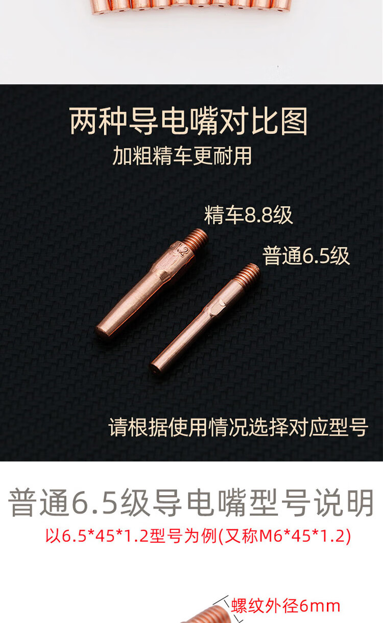 冰禹 导电嘴 BK-4 M6*45*1.2(紫铜精车8.8级) 10支 1包