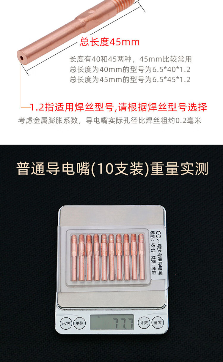 冰禹 导电嘴 BK-4 M6*45*1.0(紫铜精车8.8级) 10支 1包
