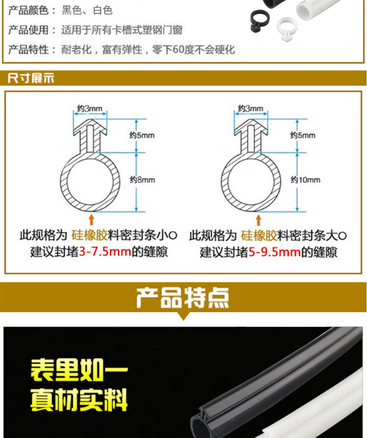 海斯迪克 门窗密封条 gnxy-85 硅橡胶/热塑性弹性体 白色 小O 10米 1件