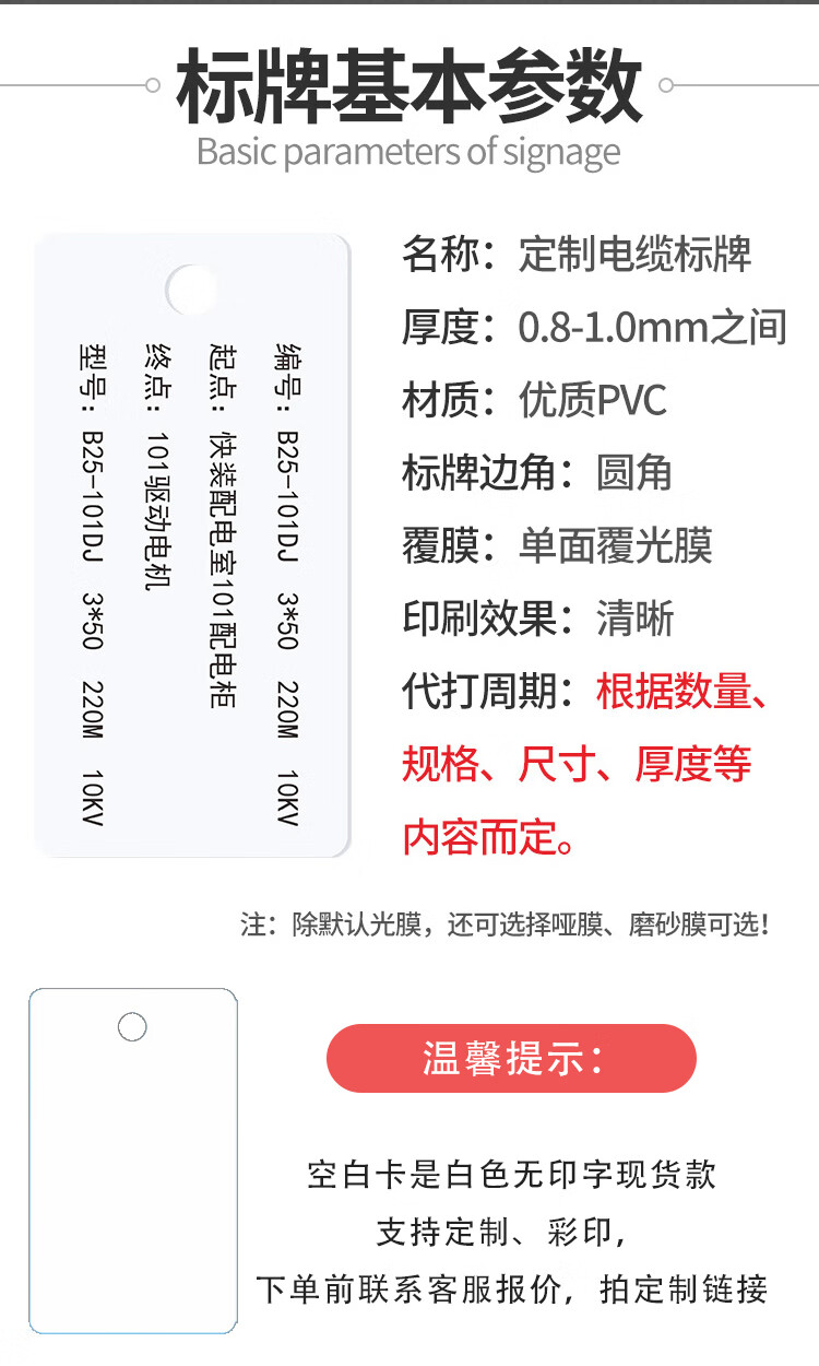 海斯迪克 电缆挂牌 gnjz-7477 双扁孔空白 54×86mm PVC 100张 1件