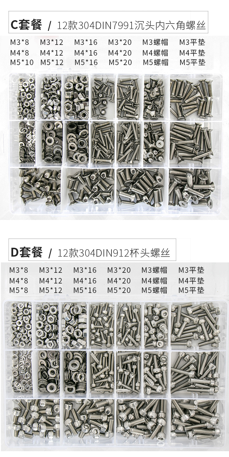 海斯迪克 组合螺丝 gnjz-1461 304不锈钢 国标 洗白 E款盘头螺丝组合 1套