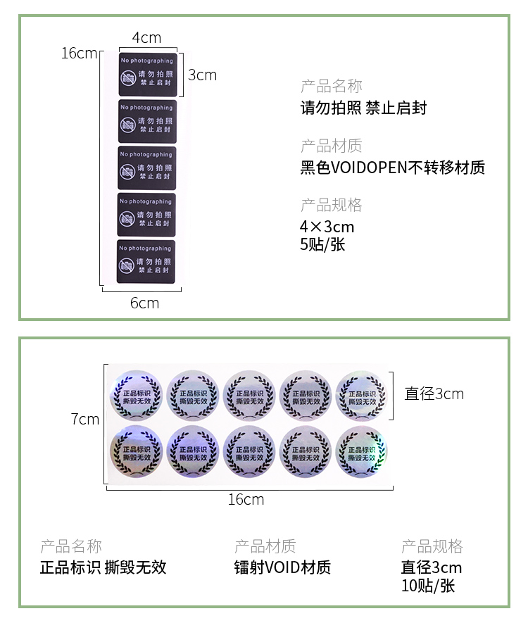 海斯迪克 摄像头贴纸防拍照标签 gny-561 40*30mm 请勿拍照禁止启封 200贴 1包