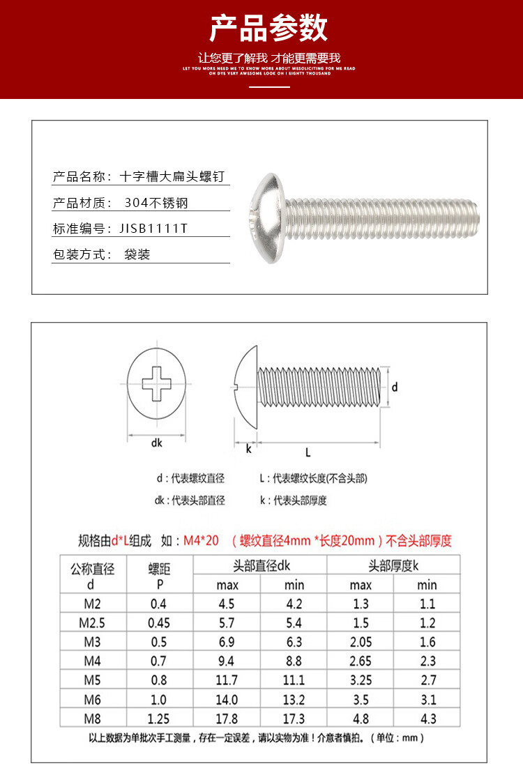 海斯迪克 十字大扁头机螺丝 gnjz-330 304不锈钢 JISB1111T M2×6 200个 1个