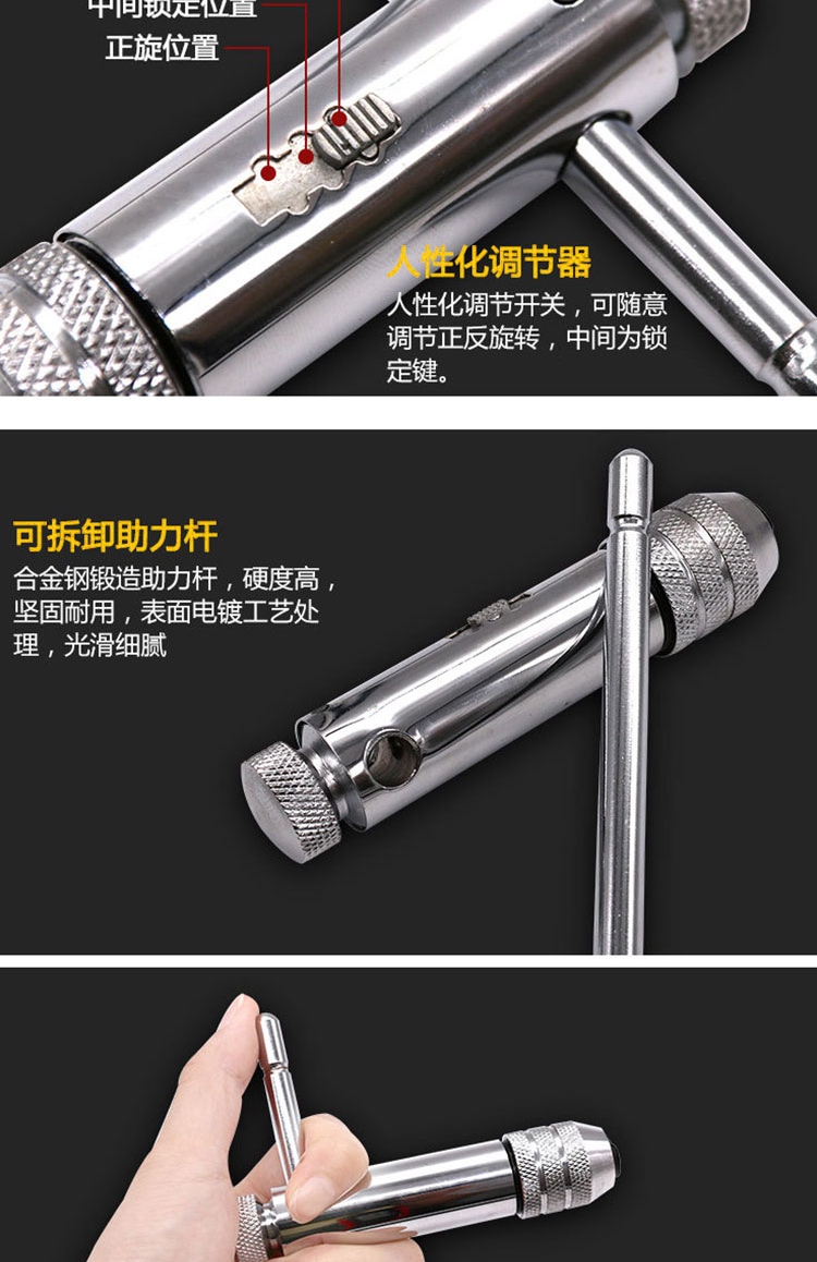 海斯迪克 可调式棘轮丝锥扳手 gnjz-355 M5-M12加长版T型丝攻扳手 1个