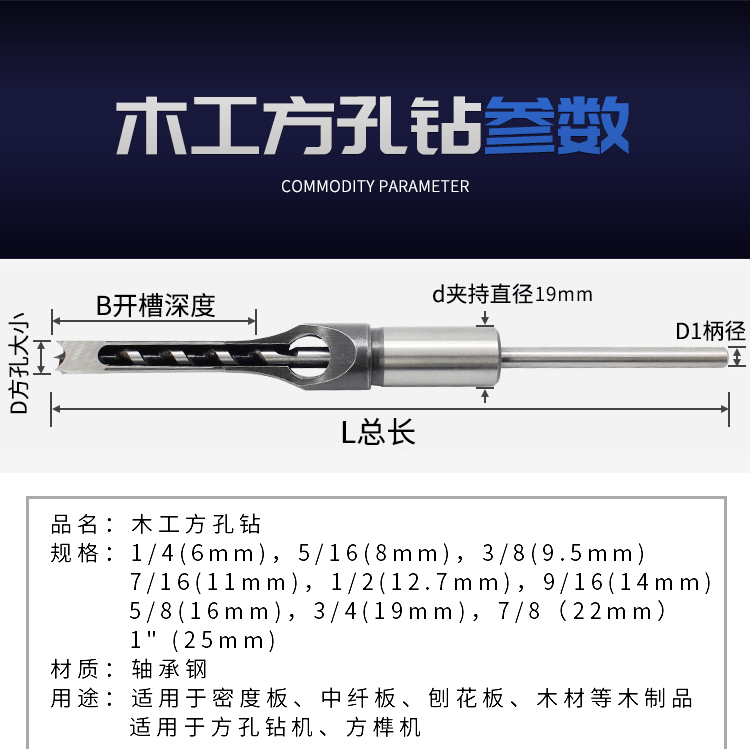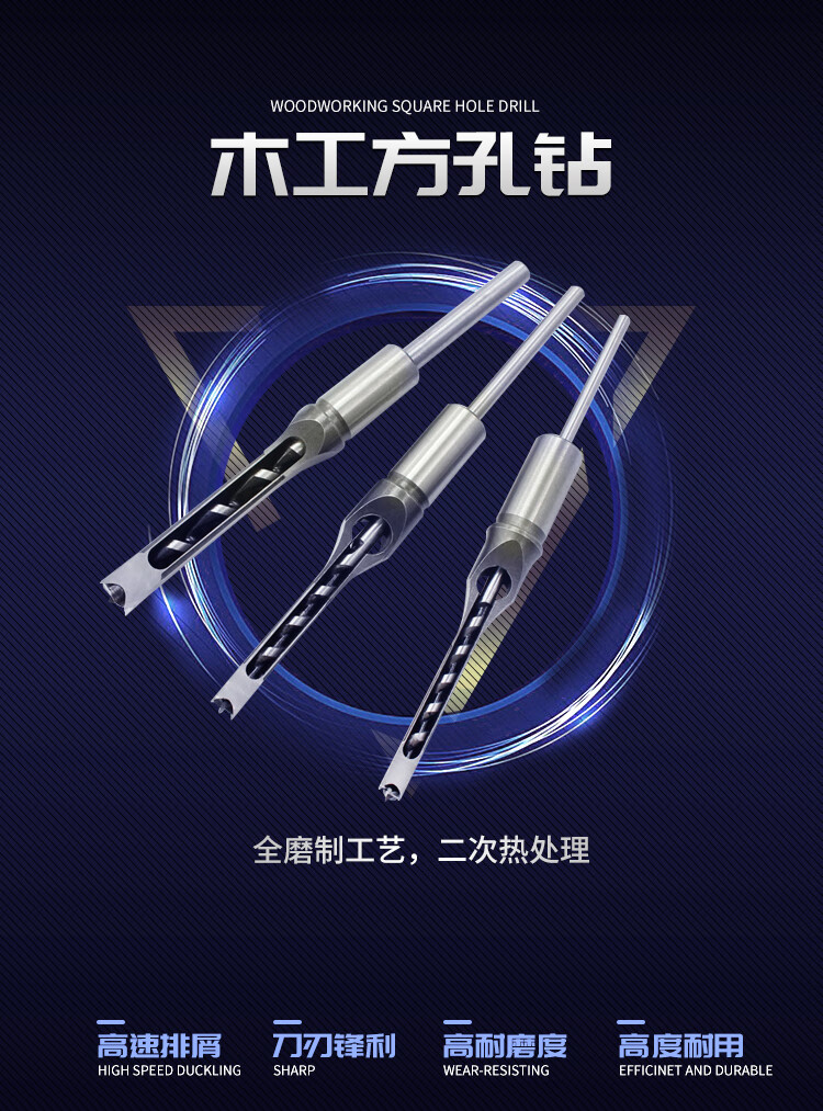 海斯迪克 木工方孔钻 gnjz-873 6PC(6.4/8/9.5/12.7/14/16) 6支 1套