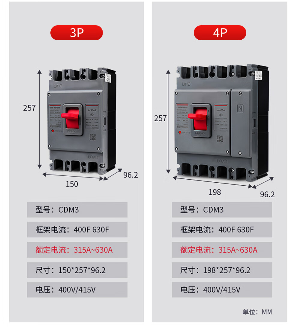 德力西电气 CDM3S系列塑壳断路器 M3S63S323200 32A 3P 单磁脱扣 35kA 1个