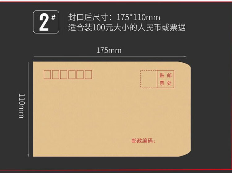 海斯迪克 黄色牛皮纸信封纸袋 gnjz-5113 2号信封 175*110mm 200个 1包