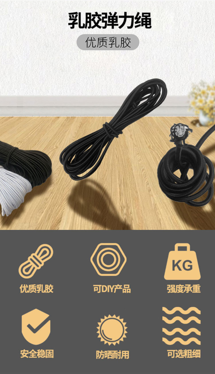海斯迪克 乳胶弹力绳 gnjz-5140 黑色 5mm 100米 1卷